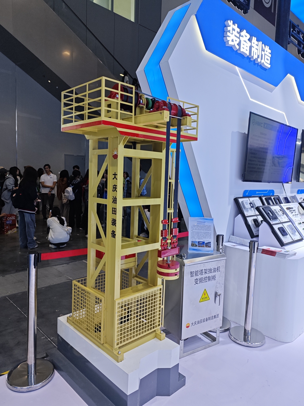 不远处,油田配备制制集团出产的第三代高效智能塔架式抽油机模子前围满了业内人士。手艺研发核心的陈星言引见,这款具有31项专利的采油配备,实现了长冲程、高智能取低能耗的冲破。